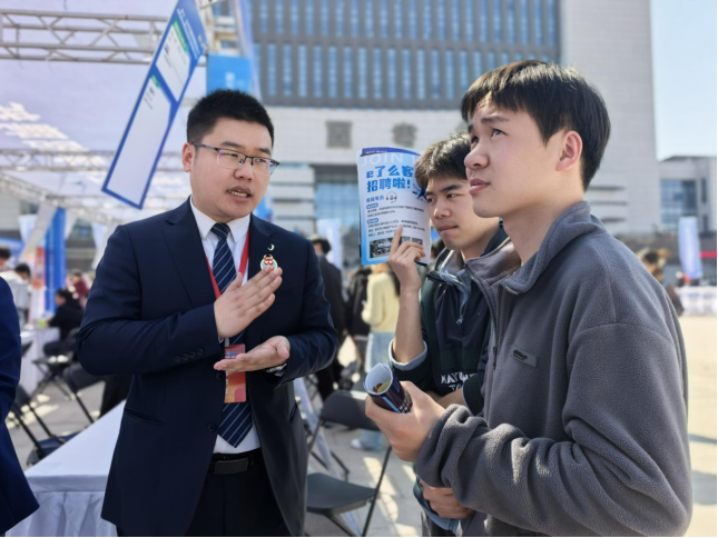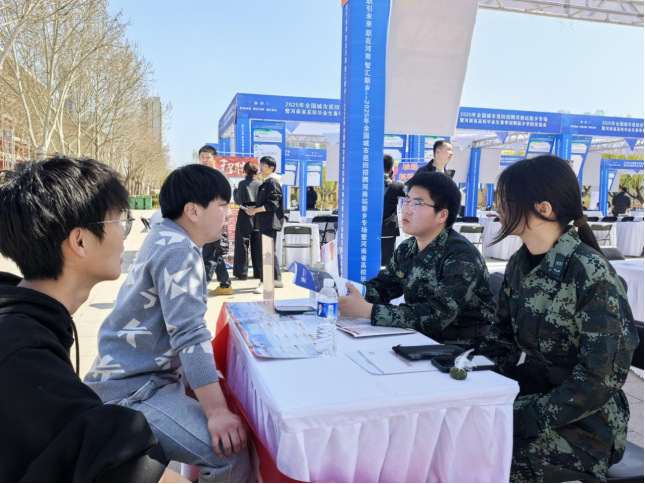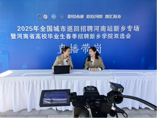 招聘会现场设置数智就业体验区,邀请四家AI就业服务平台运用大数据和人工智能技术为同学们提供AI简历诊断提升、模拟面试,根据学生的简历和求职意向,智能推荐精准匹配的就业岗位,提供用人单位招聘展位等信息,助力同学们高效应聘。为最大限度利用岗位资源,现场还开通“网络云招聘”直播间,通过大象新闻客户端、河南新闻广播拼音等6家新媒体平台进行直播带岗,河南博源新材料有限公司、珍岛信息技术(上海)股份有限公司、上海凯宝新谊(新乡)药业有限公司等6家用人单位通过直播间进行招聘宣讲,26.3万余人观看了直播。