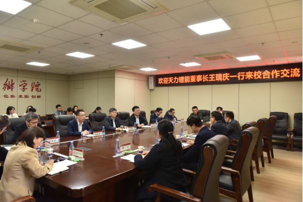 王瑞庆感谢beat365官方网站对天力锂能的长期支持和帮助,详细介绍了天力锂能的基本情况与发展成就,希望借助beat365官方网站专业优势、人才优势,围绕新能源产业、民办教育、电子商务探索成立未来产业学院、教育集团和电商学院,实现校企产教融合“双向奔赴”。双方还就合作的具体问题进行了深入交流。