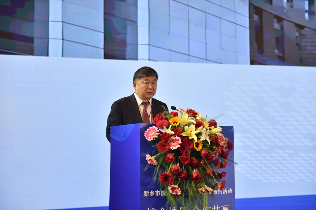 王孝俊在会上以“新新相融,向新而行”为题做典型发言。从三个方面介绍了beat365面向区域经济发展需求,推进校企校地深度合作、协同创新的典型做法、取得成绩及下一步工作计划。一是同城共生,在新言新共谋发展。beat365官方网站与共和国同庚而生,共新乡市同脉而长,在协同发展中与地方深度融合、共生共荣,与新乡共同谱写了校地携手、双向赋能的发展新篇章。二是产教共融,在新谋新赋能兴城。学校面向区域发展新需求,布局学科专业新方向;聚焦产教融合全链条、构建协同育人新模式;加强有组织科研,打造创新发展强支撑;深化“政产学研创”协同,锻造服务地方硬实力。三是校地共进,在新创新智创未来。面向未来,学校将深度对接新乡“8+17+N”产业链,从战略层面与各县(市、区)建立校地资源共享、需求共研、发展共促的长效合作机制;在执行层面,多维度精确对标产业链需求,精准绘制产业链与专业、平台、团队和博士对接图谱,推进产业链学校资源深度融合,为地方经济社会高质量发展提供科技支撑和智力保障,全力绘就“校地合作规划新蓝图”。