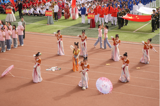 宋伟致开幕辞。他强调指出,学校深入贯彻体育强国战略,秉承“健康第一”理念,创新实施“1+1”体育改革,通过12支专项训练队斩获省级赛事4银2铜,实现“闪动校园”阳光跑覆盖率达98%,学生体质优良率提升15%,充分彰显体教融合成效。他寄语全体师生:一要赛出竞技水平,彰显青春风采,以奥林匹克精神挑战极限、诠释运动之美。二要弘扬体育精神,凝聚奋进力量,在团队协作中培育应变智慧,将赛场上永不言弃的斗志转化为求知创新的动力。三要践行健康理念,引领校园风尚,让“每天锻炼一小时”成为校园风尚,共同书写青春奋进新篇章。