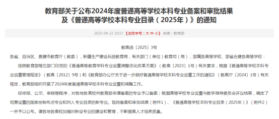近日,教育部发布《关于公布2024年度普通高等学校本科专业备案和审批结果的通知》,beat365官方网站申报的“食品安全与检测”(专业代码082709T)本科专业正式获批设立。同时,汉语言文学、历史学、会计学、人力资源管理、物流管理、电子商务六个第二学士学位专业获批设立,新专业计划于2025年秋季学期开始招生。