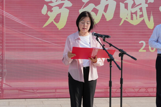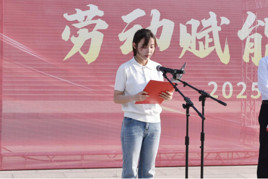 新闻传播学院教师肖靓玥代表全校教师发出倡议,号召全体教师以“挑大梁、勇争先、更出彩”为实践坐标。在劳动实践活动中锤炼自身本领,弘扬劳动精神,践行青年担当,积极为新时代的发展贡献自己的力量,努力成为德智体美劳全面发展的社会主义建设者和接班人。