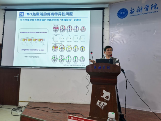 梁猛在报告中以人工智能助力现代医学为导引,提出疼痛作为机体的预警信号,其慢性化已成为全球性的健康难题,在研究中开创性地将脑功能成像技术与人工智能相结合,为揭示疼痛的神经机制提供了全新视角,同时在研究中发现人工智能技术能捕捉到疼痛在脑内的特异性时空编码,疼痛的脑激活模式可作为“脑纹”进行身份识别;此外梁教授还发现了与疼痛脑激活显著相关的遗传因素。这些发现为揭示疼痛脑机制提供了新视角,展现了脑成像与人工智能技术在疼痛研究中的巨大潜力。报告之后,梁教授与现场师生展开了互动,师生就脑成像与人工智能方面提出了问题,梁教授一一解答。