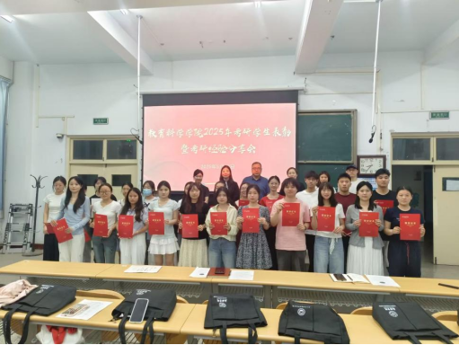 本次考研学生表彰暨考研经验分享会既是对优秀学子的表彰,更是对奋斗精神的传承,为正在备考的学子们提供了宝贵的经验和指导。未来,教育科学学院将继续深化人才培养模式改革,以更优质的资源、更完善的机制、更贴心的服务,助力更多学子在研途上书写精彩人生!