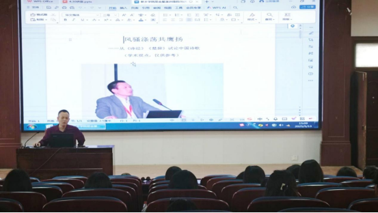 5月13日下午,中国诗歌春晚总策划屈金星先生在A01报告厅为人文学院200余名师生做了一场题为《风骚涤荡共鹰扬——从〈诗经〉〈楚辞〉试论中国诗歌》的讲座,讲座由人文学院副院长申红星主持。