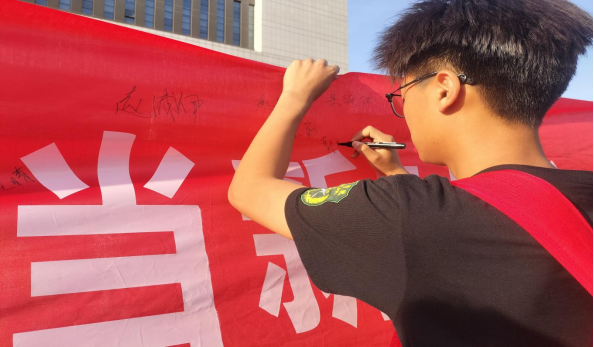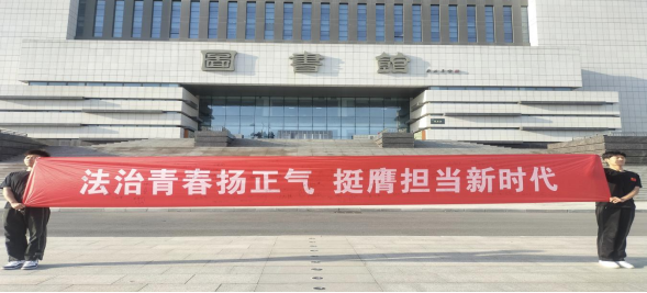 5月12日,国旗护卫队于国旗广场开展“法治青春扬正气,挺膺奋进新时代”主题升旗仪式,通过学生代表国旗下讲话、横幅签名、法治誓言宣誓等环节,深化当代大学生对法治精神的理解,加强纪法意识,引导其树立“尊法、学法、守法、用法”意识,推动法治与奋斗主题融入校园文化建设,营造良好校园文化氛围。