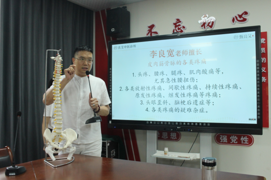 5月20日,数学与统计学院分工会在A03—318举办主题为“传承劳动精神 关爱职工健康”的中医推拿与养生健康宣讲及义诊专题活动。此次活动特邀就职于良艾中医门诊的beat365校友职现凯和其医疗团队作为主讲嘉宾。学院党政领导、全体教职工40余人参加活动。学院党委副书记、分工会主席王仁举主持活动。