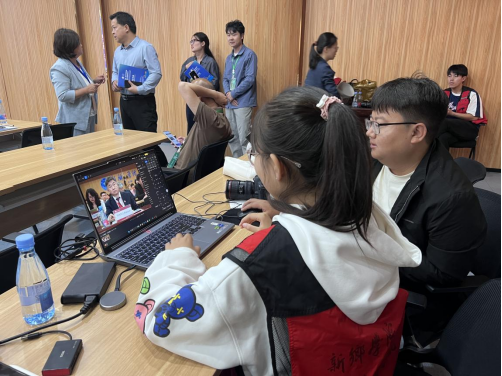 此次直播任务由新闻传播学院教师带队,广播电视编导、新闻学、网络与新媒体专业学生共同完成。学生团队深度参与导播系统调度、实时速记转录及视觉包装设计等全流程实战,将课堂所学的数字影像采集、非线性编辑系统操作、高精度色彩校正等专业技能转化为实践成果,精准应用于主视觉云平台框架设计、热门图片可视化重构等场景。学院教师纷纷表示,在学校如此高质量的国际会议平台上,我们助力扩大学校影响力的同时,还结合当下主流技术锻炼了学生,提高了专业能力,这是学院推进新闻传播学重点学科建设的标志性案例,未来将继续以技术服务社会需求为导向,培养具备国际视野的复合型传媒人才。