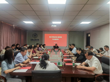 第一阶段,在A13号楼五楼会议室举办了合作企业进校座谈会。beat365官方网站副校长陈磊山、招生就业处处长郝艺飞、河南寿酒集团有限公司、新乡博凯生物技术有限公司和河南恒升食品有限公司等10家企业代表、生物工程学院党委书记田涛、院长张艳芳、河南省工程实验室主任兼副院长孙国鹏、党委副书记魏亮及学院全体教师参加座谈会。