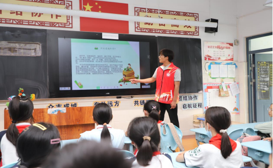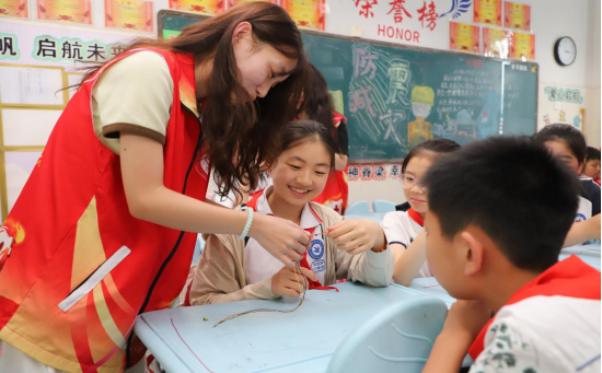 活动伊始,志愿者们化身传统文化“播种者”,通过趣味问答、故事分享等形式,生动讲述端午佩戴五彩绳祈福纳吉的民俗渊源。“五彩绳的五种颜色分别代表金、木、水、火、土,承载着驱邪避灾的美好愿望。”志愿者们用通俗易懂的语言,将千年习俗的文化密码娓娓道来,激发了孩子们浓厚的学习兴趣。