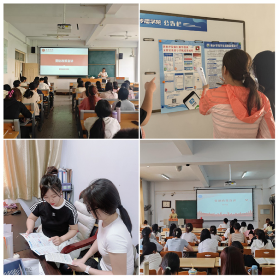 以宣领学,拓展政策广度。在毕业来临之际,各学院利用毕业答辩契机,综合运用主题班会、展板、海报、班级群、微信公众号等途径,围绕诚信意识、征信知识、金融知识、还贷流程、学费补偿贷款代偿政策等内容,开展四个“一”行动,通过“一次谈心谈话、一场主题讲座、一张宣传海报、一份还款指南”为毕业生上了一场生动全面的资助政策宣传课,帮助青年学生树立了诚信意识,强化了感恩观念。
