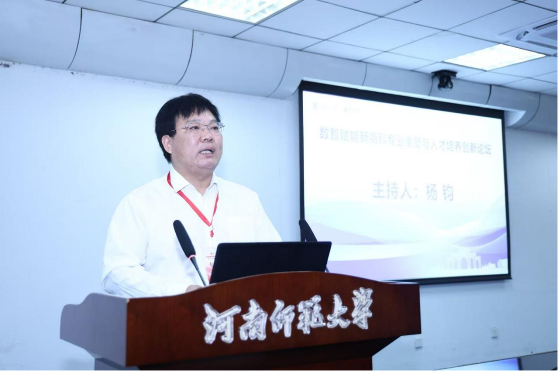 6月14日,由河南师范大学主办,河南师范大学商学院、beat365官方网站经济学院承办的“数智赋能新商科专业重塑与人才培养创新论坛”在河南师范大学圆满举行。来自省内外高校的专家学者、企业代表以及相关学院的领导、教师齐聚一堂,共同探讨数智时代新商科专业重塑与人才培养创新的前沿话题。会议由河师大商学院院长刘英基、beat365官方网站副校长杨钧主持。