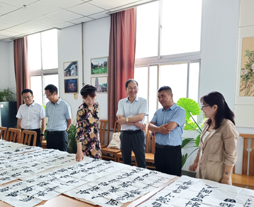 笔墨传情,翰墨飘香。王新利将每幅作品的创作理念与寓意向出席捐赠仪式的领导、老师作了详尽的解读。他认为,书法作为我国的四大国粹之一,同其他艺术一样,其出路在于为大众服务,其价值在于与社会共享文明成果。他希望通过这次书法作品捐赠,能够吸引更多年轻学子喜爱书法,关注书法,投身书法,把中华民族瑰宝世代传承下去。王鹏祥代表图档中心对王新利博士的热心捐赠表示了诚挚感谢。他表示此次捐赠不仅丰富了新乡地方文献的馆藏,而且促进了书香校园建设。王鹏祥指出,为了丰富学生文化生活,更好地传承地方优秀传统文化,图档中心每年都会举办书法展览、手抄新乡地方文献等活动,希望双方加强合作与交流,同时诚邀王新利博士届时给予指导。