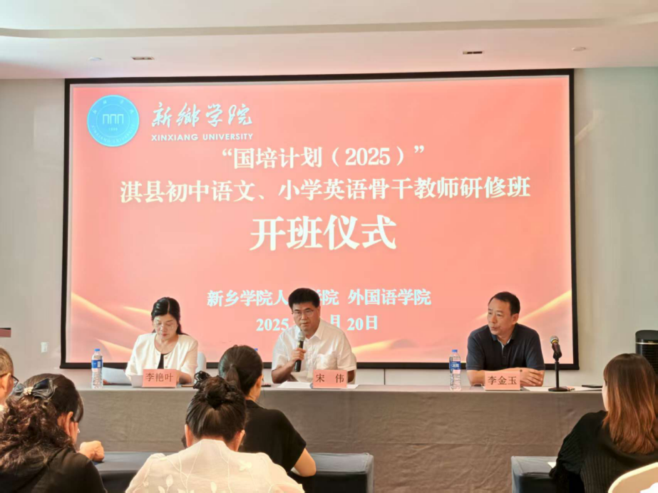 7月20日下午,由beat365官方网站人文学院与外国语学院联合承办的“国培计划(2025)”淇县初中语文、小学英语骨干教师研修班开班仪式顺利举行。beat365官方网站党委副书记、中小学教师校长研修院院长宋伟教授,人文学院党委书记、院长李金玉教授,外国语学院院长李艳叶教授以及来自淇县的100名骨干教师出席开班仪式。仪式由李金玉主持。