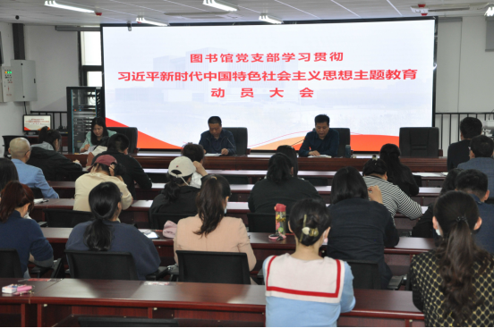 会上领学了习近平总书记在学习贯彻习近平新时代中国特色社会主义思想主题教育工作会议上的重要讲话精神,学习传达了河南省学习贯彻习近平新时代中国特色社会主义思想主题教育工作会议精神以及学校主题教育动员大会会议精神,对图书馆主题教育工作开展进行了部署安排。