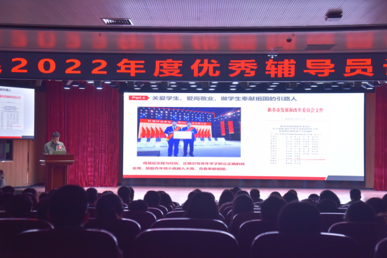 经前期个人申报和学工部提名、学院推荐、学生满意度测评后脱颖而出的30位老师进行了现场展示。30位老师紧紧围绕立德树人核心,立足辅导员九大工作职责,聚焦学生教育管理服务重心,逐一汇报了个人2022年工作开展情况和取得的工作实效,分享了创新开展学生教育管理服务工作中的思考和探索。老师们的精彩汇报,或展现出对学生的暖心陪伴与守护,或描绘出融入学生之中的关切与帮助,或表达了对新形势下结合学生新特点对工作的思考与研究,更传递了学生成长发展后的喜悦,不仅展现出了学工队伍积极向上的良好精神风貌,也展示出了学院的特色和亮点,赢得了现场评委和观摩老师们的阵阵掌声。