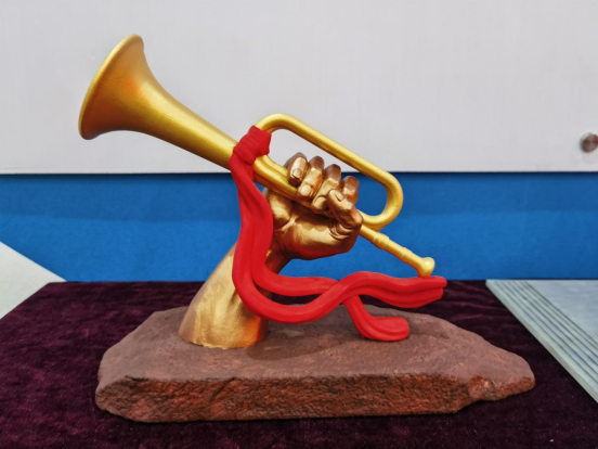同时,田文强还在今年所指导的毕业设计中,再次发动同学们创作了例如“一大旧址模型”、“井冈山纪念雕塑(井冈红旗与胜利的号角)”、红色延安创意作品、天安门城楼模型、毛主席纪念堂模型、革命导师(毛主席、周总理、邓小平)伟人纪念像、革命英烈董存瑞纪念像等一系列红色文创作品。同学们通过前期的红色史料收集,心灵上受到了深层次的触动和洗礼。在打印作品和撰写论文的时候,自觉接受了思想政治教育。此举不仅能促进学生专业技能和思想道德品质的大幅提升,还能产生经济效益。这些作品经过后续的包装和运作,可以成为绿色环保的红色文创产品。在产生经济效益的同时,又可以进一步扩大红色思想政治教育引领的效果,同时促进学院就业创业工作高质量发展。